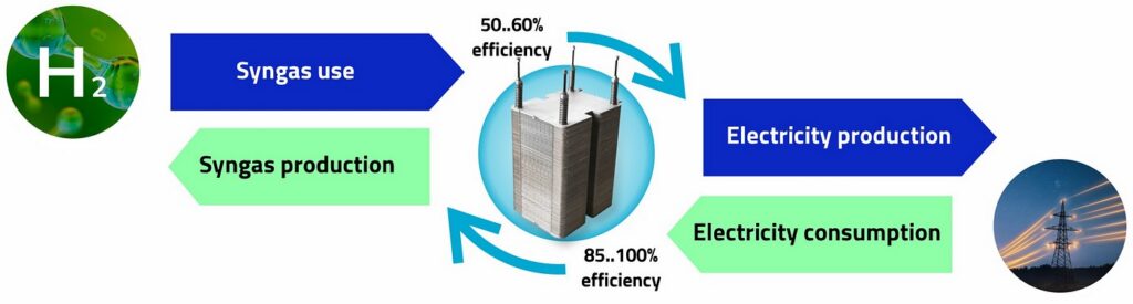 Our reversible SOC technology allows for the same system to run in both fuel cell and electrolysis mode.