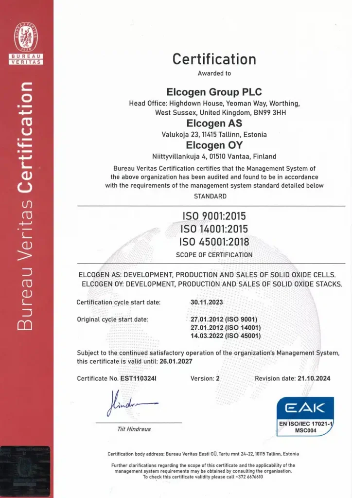 Elcogen manufactures advanced Solid Oxide Fuel Cell (SOFC) and electrolysis (SOEC) technologies to support the production of affordable green hydrogen and clean electricity. Since 2001, we’ve grown into a global company with offices in Estonia and Finland, and registered office in the UK.